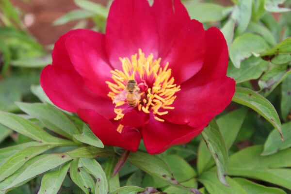 Early Scout is a compact and delightful early flowering peony. Flowering in September similar to Coral Fay this hardy and vigorous grower signals the start of the peony flowering season with its striking red cup shaped blooms. The foliage is more pointed and finer than its later flowering cousins and is well suited to an early border display in the garden 🙂