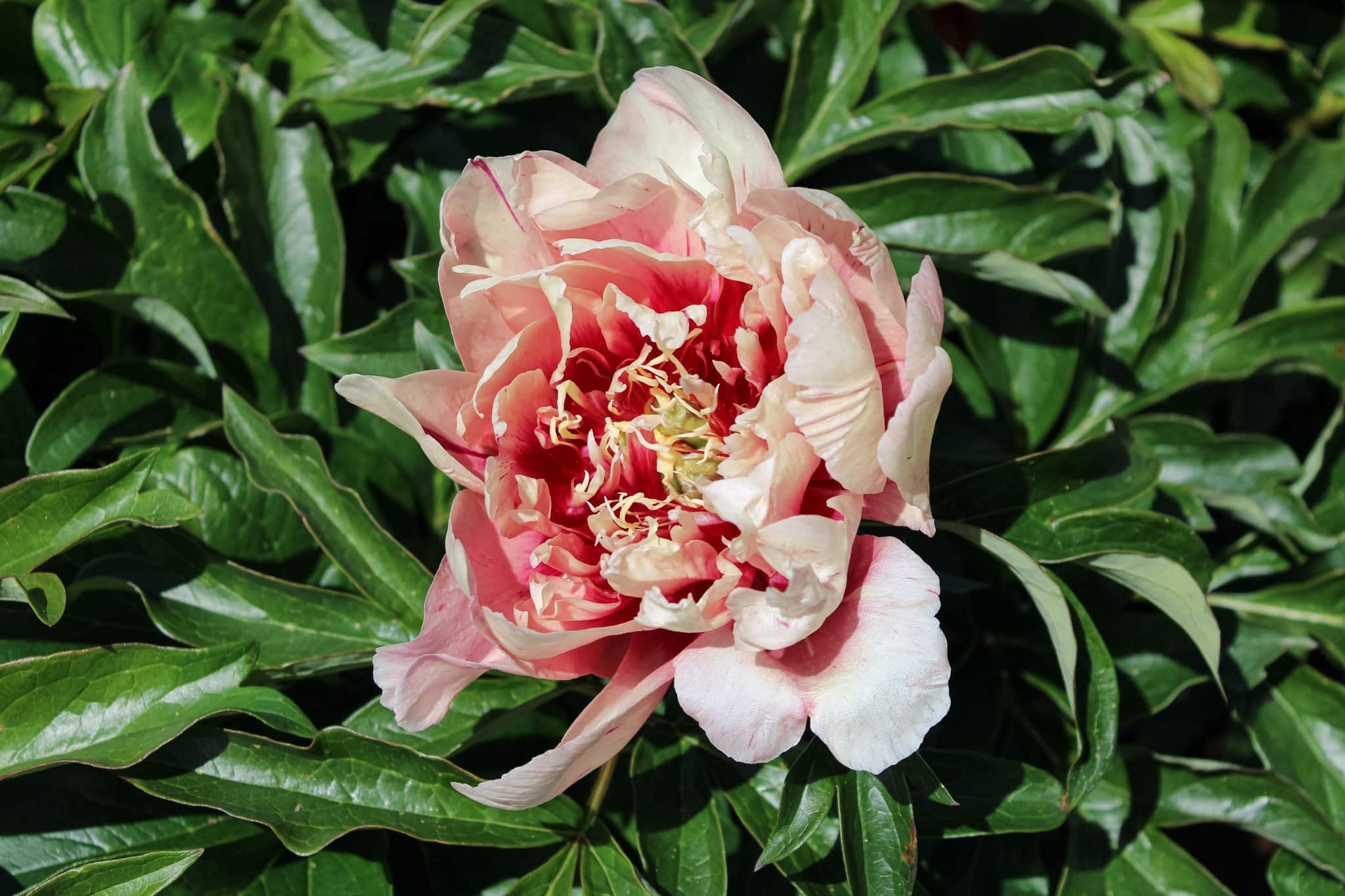 A full double flower that is pastel pink with dark undertones. Oochigea stands tall and flowers mid-season. Itohs have a larger range of colours, longer flowering periods and present a bushier more floriferous plant. They carry foliage similar to that of the Tree Peony however die back to ground level just as their herbaceous cousins. Itoh’s are more likely to flower much better in warmer and more temperate climates when compared with herbaceous peonies. They also have a higher tolerance to disease.