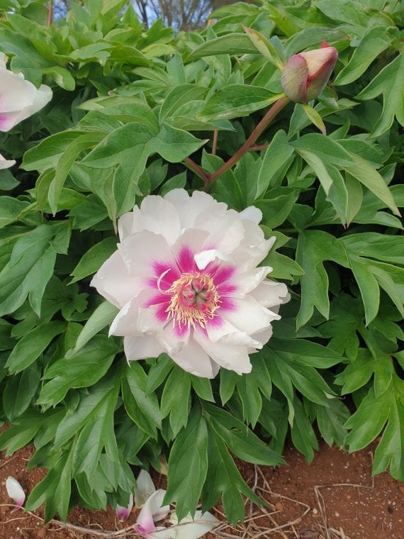 * As Autumn approaches you will notice the foliage starting to change colour and slowly die back. It is time then to remove the entire bush by trimming it back down to just above ground level and preparing it for winter. Very important to discard the plant material into your waste as this will prevent disease build-up around the plant. During this time, a top dress of either compost or NPK can be added as well as lime or dolomite, remembering not to cover over the crown of the plant. Fertilize again in early spring and after flowering for best results. Peonies are great feeders!