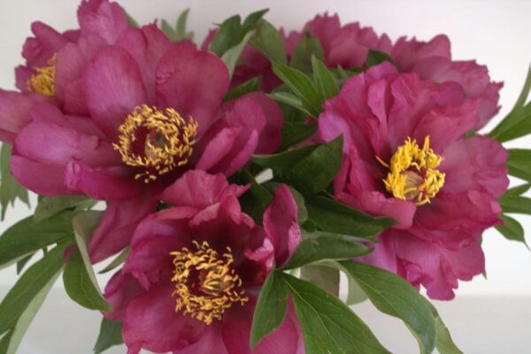 Yankee Doodle Dandy is a dark pink semi-double which as the flower matures, presents cream undertones. Yankee comes in mid-season and stands on a strong bush. Itohs have a larger range of colours, longer flowering periods and present a bushier more floriferous plant. They carry foliage similar to that of the Tree Peony however die back to ground level just as their herbaceous cousins. Itoh’s are more likely to flower much better in warmer and more temperate climates when compared with herbaceous peonies. They also have a higher tolerance to disease.